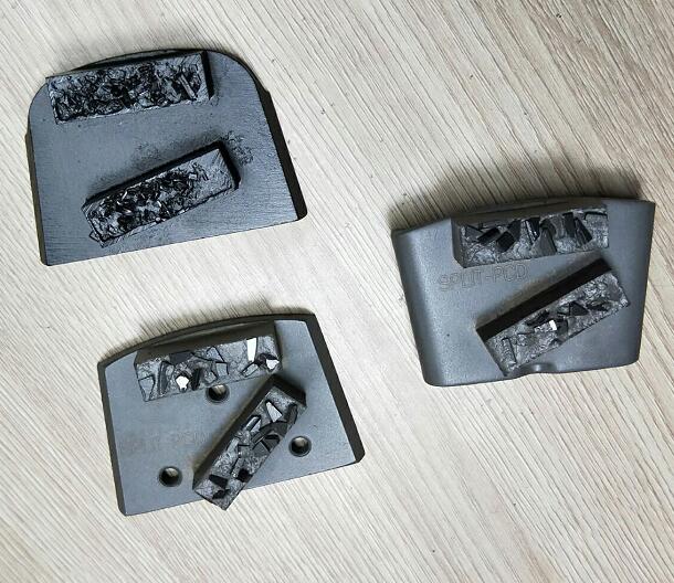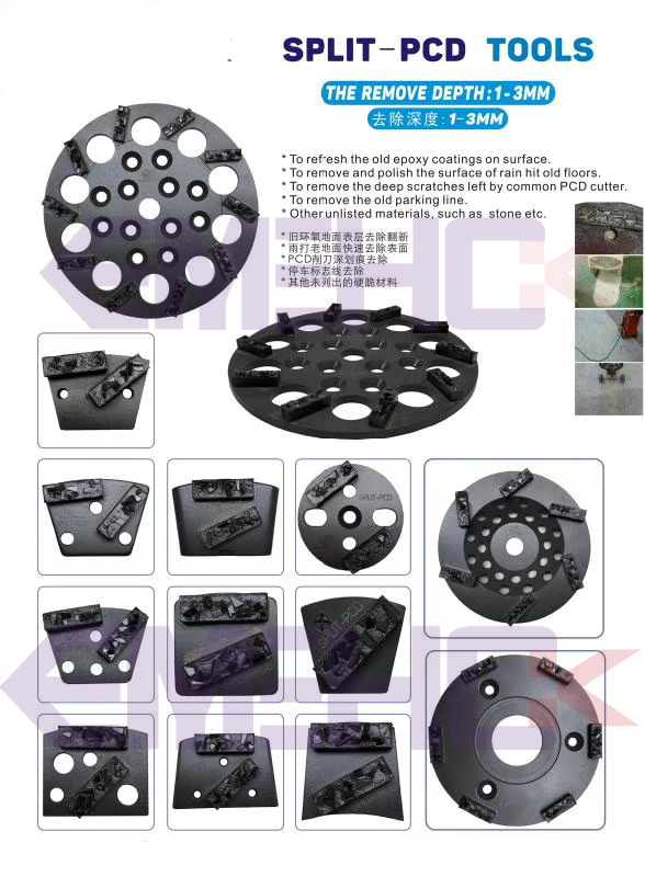 The split pcd grinding shoes specially used for removing 1-3mm thin epoxy, glue, paint, coatings from floor surface. It doesn't matter if your machine runs anticlockwise or clockwise, this split pcd pad works. Compare with 1/4, 1/3, 1/2 PCD segments, split pcd will not leave deep scratches on the surface, it's better for concrete preparation next step. High quality split pcd and diamond compounds ensures its sharpness and long lifespan