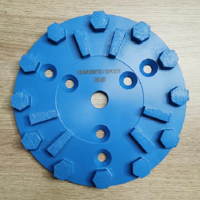 10" grinding plate for floor grinders, with varying diamond grits designed for concrete, epoxy, mastics, thinset, water-proofing coatings and more. #25/30 diamond grit versions will achieve a more aggressive grinding and faster stock removal.For smoothing rough or patched floors and feathering uneven joints or slab panels. Removing hard epoxies, urethane and other coatings or toppings. Grinding down bumps, raised or curled footpath panels. The diamond plate offers high durability and speed. fit most machines on the market. These diamond plates can be used dry or wet.
